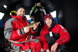For sure, ice fishing is a social event, but it also involves team work. While large shelters, permanent or not, can seem like a great idea for hosting ice fishing gatherings, their efficiency for aiding in finding fish is minimal. A group of friends spreading out over the ice can serve to more effectively determine where fish are staging. Once fish have been found, moving closer together will increase everyone’s chances of catching fish. Only then should one go ahead and set up a shelter or wind break, depending on temperatures. However, it would seem that the use of such enclosures has gone full circle with many now electing to employ “wearable shelters” (warm clothing) thanks to a number of ice fishing companies who have begun marketing fashionable and functional extreme weather outerwear designed specifically for the ice fisher. The new Ice Suit from Frabill is a light-weight breathable two-piece shell that offers fishers layering flexibility for maintaining ideal comfort – excellent given the wide range in temperatures that now seem to typify our winters.