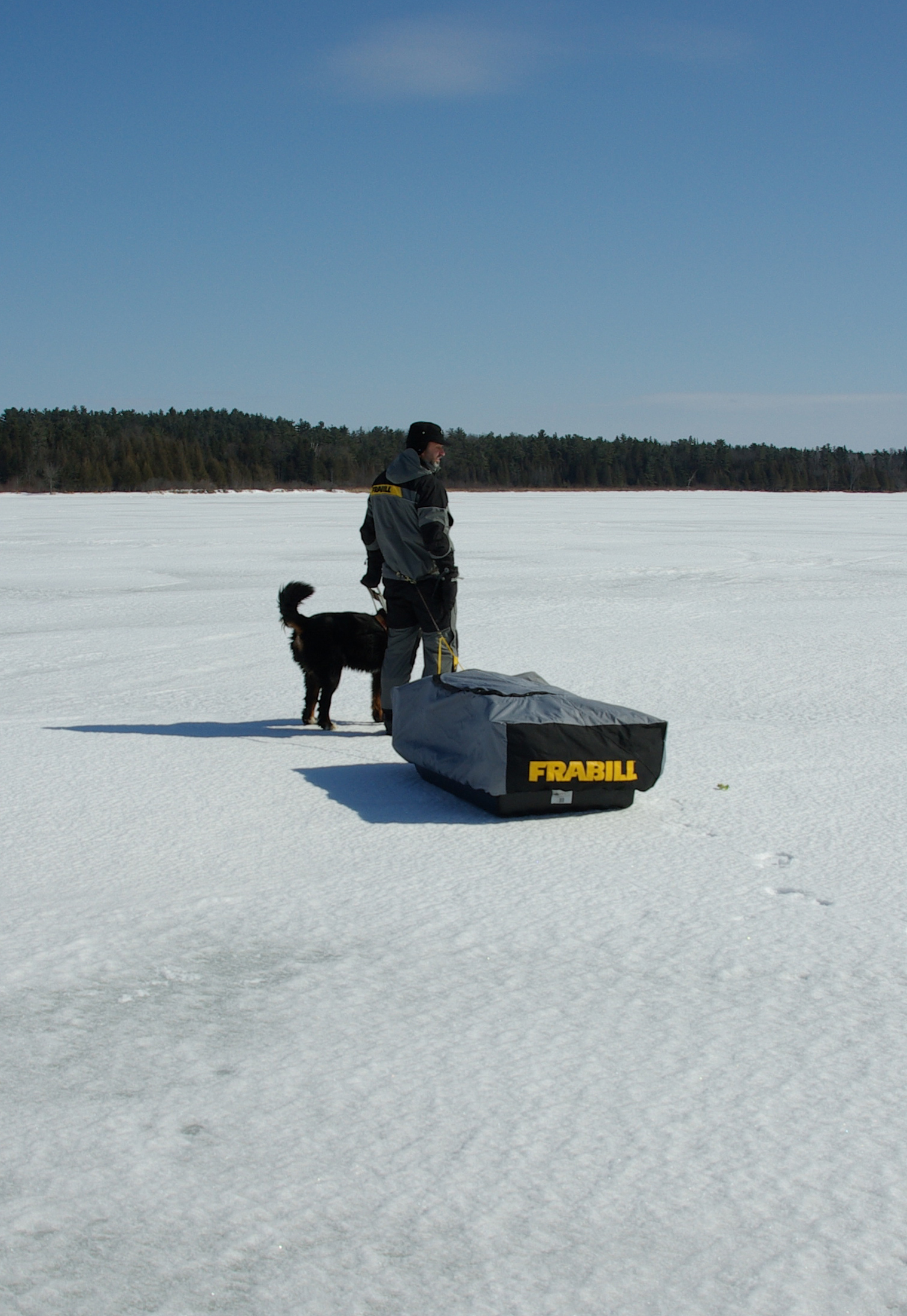 I’m often somewhat amazed that seasoned fishers perceive ice as some sort of impervious shield that renders fish witless about what’s taking place just meters above their heads. Whether there is ice or not, fish are still capable of being aroused and ultimately spooked. Pounding from heavy boots, clatter from equipment being unloaded, vibrations from gas-powered engines, wholes filled with intense light suddenly opening up above their once silent ice and snow covered worlds, all offer ample evidence that things are not as they should be. I’m not advocating ninja training or fishaflage; however, “Out of sight, out of mind” doesn’t apply on ice. The more “kit” one drags around the more reasons fish have for getting over their initial curiosity and switching to the defensive.