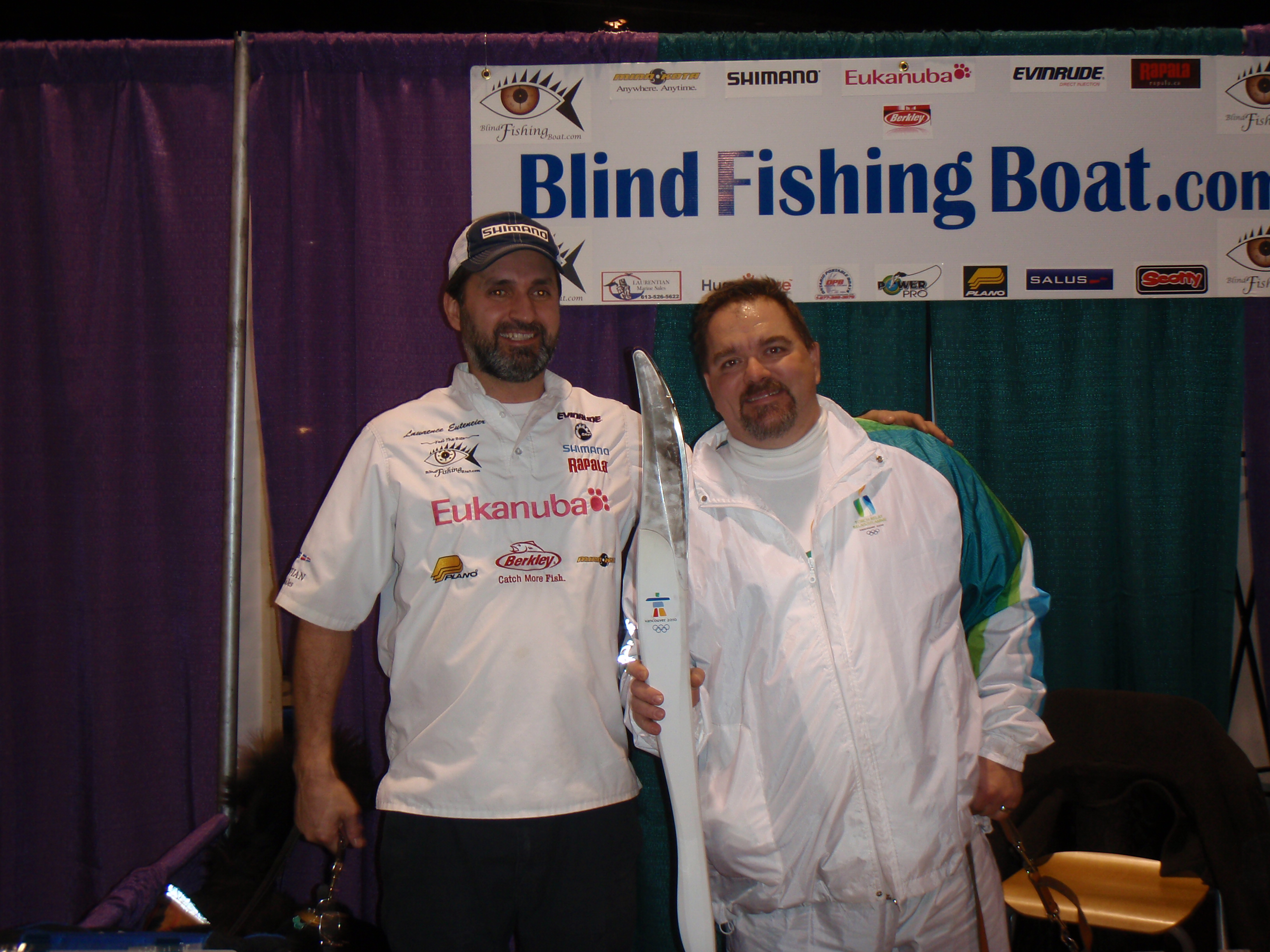 Numerous other visitors to my exhibit such as J.P. DeRose kept me and especially Maestro hopping. A big thanks to my booth neighbours David Chong and his legion of volunteers, especially Jeff English, for the assistance over the four days. All-and-all, the show was a huge success on many fronts. I think it’s safe to say that the idea of fishers with vision loss fishing along side sighted fishers has been advanced. Shifting awareness of the public to view fishers with vision loss as folks who just want to fish and who don’t really need any special gear or assistance is happening. Sighted fishers and family and friends of people without sight are becoming steadily more aware that fishing is an ideal sport for those with vision loss due to it’s reliance on touch to understand what can’t be seen taking place under water.