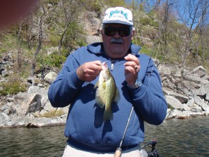It quickly became evident that Art’s preferred means of finding Crappy is, “run and gun”. They are a schooling fish that prefer weed beds – preferably Coon Tail, or any other form of dark structure in shallower water that will absorb solar energy and at the same time provide cover. Even though the boys new the waters well, it wasn’t until our third location that we encountered our first school. We found in total about five schools that day including one on a rock pile in 6-10 feet of water.