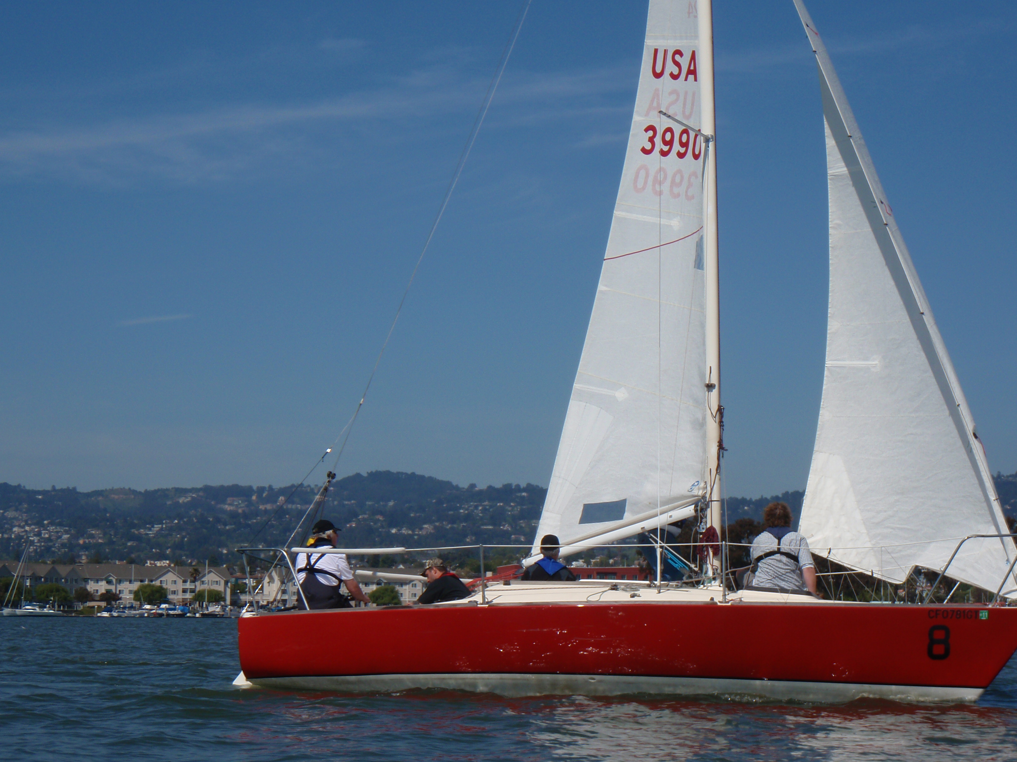 Al Spector and Danette Davis of the Marin Sailing School organized the event, which was hosted by the Island Yacht Club located on Alameda Island situated in San Francisco Bay. Teams came from Boston, Canada, Japan, two from California and our own. Six races were held on day one, and three additional races on day two.