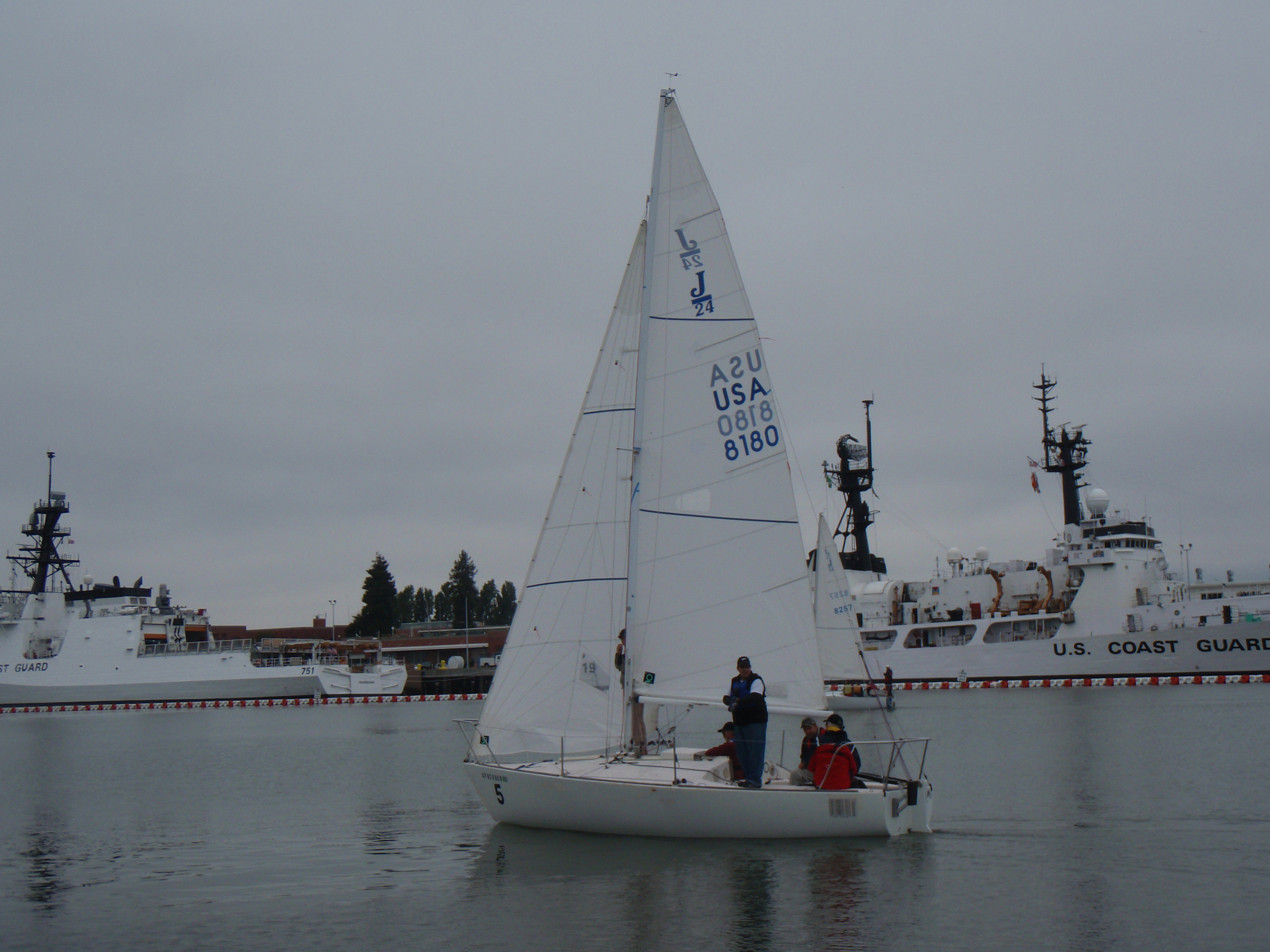At the end of day one Boston was in the lead with 14, Canada in second with 20, Japan and our team were tied for third with 21, and the two California teams had 23 and 27. Our 21 points for day one were collected by finishing 3, 2, 2, 2, 6 and 6. We had no idea why our two final races were so slow with us finishing last both times.