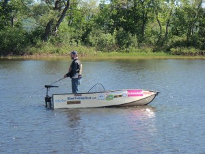 Photo of Lawrence piloting his 12-foot Blind Fishing Porta-Bote